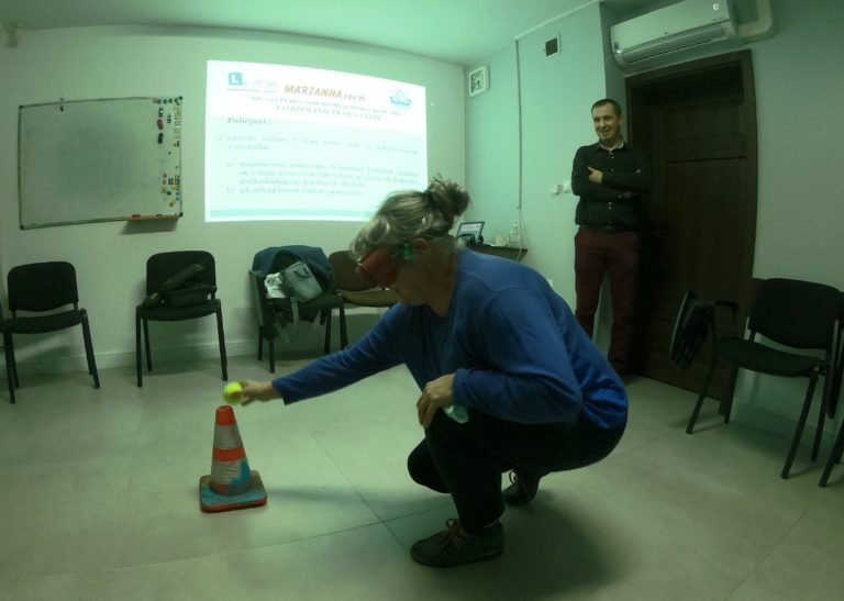 Ponadto nasi kursanci mogli doświadczyć w trakcie ćwiczeń praktycznych z piłeczką jaki wpływ ma alkohol na zdolności poznawcze czy panowanie nad własnym ciałem. Wykorzystaliśmy alkogogle, było naprawdę ciekawie i pouczająco. To kolejny dowód na to że zajęcia teoretyczne w szkole jazdy są bardzo ważnym elementem szkolenia i jak widać mogą być realizowane w nowoczesnej formie prelekcji. Uczestniczy grup wykazywali pełne zaangażowanie co bardzo ważne oraz chętnie czerpali wiedzę od doświadczonego policjanta.